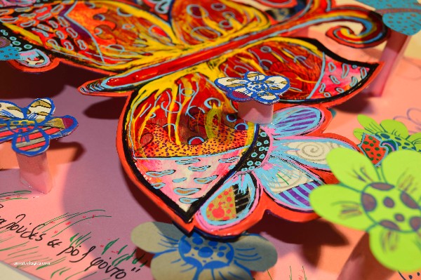 Με τα ψαλίδια και τις κόλλες της, η καλλιτέχνιδα δημιουργεί έργα-αντικείμενα που μαρτυρούν από τη μία τη στροφή προς τη ζωή, την καθημερινότητα, τον έξω κόσμο και από την άλλη τον εσωτερικό της κόσμο, τις ευαισθησίες της, την τρυφερότητά της, την αλήθεια της. Με μια γλώσσα άμεση, ποιητική κι ανεπιτήδευτη προκαλεί στο θεατή μια καθαρή ευεξία και μια ατμόσφαιρα υψηλής οπτικής έντασης. Και η αγάπη της για το ασήμαντο, για την καθημερινότητα, για τον μικρόκοσμό μας, γίνεται τέχνη μεταφέροντας την αγάπη για τη ζωή.