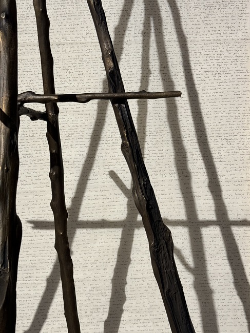 Οι «Δίνες» που άφησαν το αποτύπωμά τους με σινική μελάνι πάνω σε χειροποίητο χαρτί, όπως και το «Μάταιο Γράμμα», μια επιστολή που δεν έφυγε ποτέ. Οι «Σκιές» των εμβληματικών «Προμαχώνων», που είναι τοποθετημένοι στον προαύλιο χώρο του μεγαλύτερου και σημαντικότερου ελληνικού μουσείου, του Εθνικού Αρχαιολογικού επί της οδού Πατησίων. Η υφασμάτινη «Σινδόνη» και οι εκατοντάδες «Κεραμεικές Χειρονομίες», μέρος της βιντεοεγκατάστασης «Ζωοδόχος Πηγή», είναι μερικά από τα έργα που συνθέτουν τις δέκα συνολικά ενότητες, οι οποίες έχουν καταλάβει τους τέσσερις χώρους της γκαλερί.
