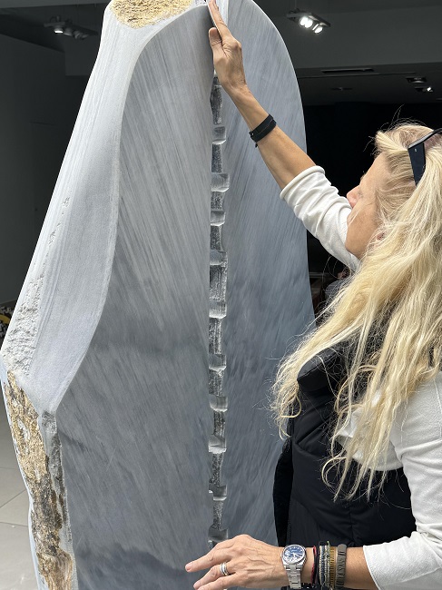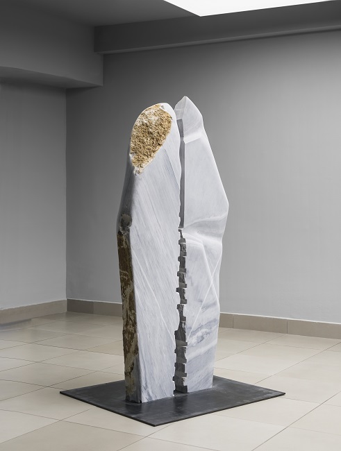 Δύο επιβλητικές αφαιρετικές φόρμες. Ένα μαρμάρινο όλον που έχει διαιρεθεί από μια ακανόνιστη τομή. Ένα μικροσύμπαν που βρίσκεται σε ένα μεταίχμιο ένωσης ή διάσπασης. Ένα μνημείο που υμνεί την κορυφαία σε διακυμάνσεις κατάσταση που μπορεί να βιώσει ο άνθρωπος: τον έρωτα. Είναι το κεντρικό γλυπτό που φέρει την υπογραφή της εικαστικού, Βένιας Δημητρακοπούλου και αποτελεί τον πυρήνα της νέας της ατομικής έκθεσης «Σμιλεύοντας τον έρωτα», που παρουσιάζεται στη γκαλερί Κουρντ.