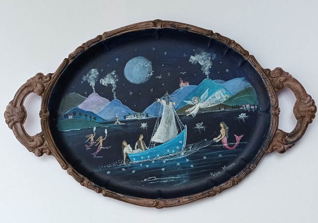 «…ένα περιβόλι είναι ο κόσμος πού μας παρουσιάζει στις ιστορίες του… Παντού τα συγκεκριμένα και τα χειροπιαστά, ζωγραφιές των πραγμάτων, όχι άρθρα… Πρόσωπα, όχι δόγματα. Εικόνες, όχι φράσεις. Κουβέντες, όχι κηρύγματα, διηγήματα, όχι αγορεύσεις», σημείωνε για το έργο του αγίου των γραμμάτων ο Κωστής Παλαμάς. Το εικαστικό αφιέρωμα στον Αλέξανδρο Παπαδιαμάντη συντίθεται από εβδομήντα έξι «σημειώσεις» εικαστικών που με αφορμή την έκθεση ξανα-διάβασαν Παπαδιαμάντη, επιλέγοντας διαφορετικούς άξονες αναφοράς και επάλληλες αφετηρίες εικονοποιίας με κυριάρχο πρόσημο τη Σκιάθο.