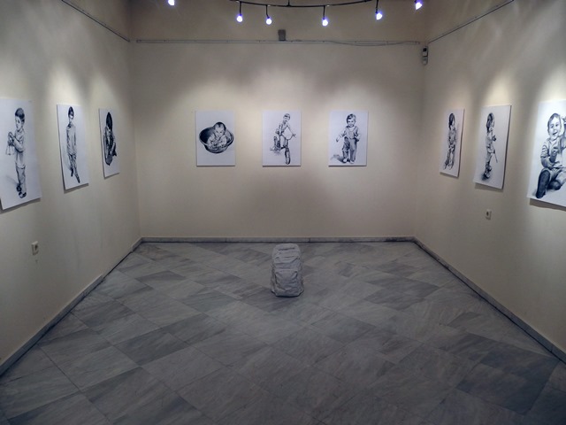 Αυτή η εγκατάσταση, είναι ένα μνημείο στον κάθε Μινώταυρο. Εγκλωβισμένος ο καημένος μέσα στον Λαβύρινθο του, να παίζει τον θύτη και το θύμα ταυτόχρονα, ως μια διπολική διαταραχή, έχοντας στο μυαλό του, την ελευθερία – το ιδεατό και στην καρδιά του τον Έρωτα – το Ιδεώδες, ζει περιμένοντας την λύτρωση, ψάχνει εναγωνίως έναν Θησέα, έναν εξωτερικό παράγοντα δηλαδή, ενώ η λύτρωση είναι μια ενδοσκοπική κατάσταση. Ο χρόνος σε αυτή την εγκατάσταση δείχνει το πραγματικό του πρόσωπο, την αχρονικότητα. Είναι όλοι οι χρόνοι μαζί. Τα σχέδια στους τοίχους είναι μια ανάμνηση της ως τώρα ζωής του. Μια αποτύπωση της παιδικής ηλικίας του ίδιου και των παιδιών του μια παρουσία, του Έρωτα του, μια πυξίδα θα μπορούσαμε να πούμε, που λειτουργεί ως Μίτος στο Λαβύρινθό του.
