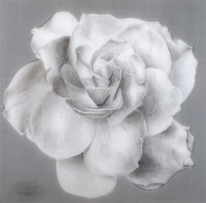 2 Άρωμα γαρδένιας, 2023, κάρβουνο, ύφασμα, 85 x 85 εκ