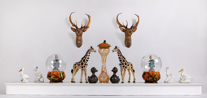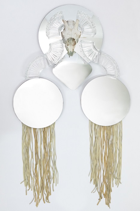 Ready made αντικείμενα όπως γυάλινες σφαίρες, γυάλινοι φακοί επαφής, καθρέπτες, πορσελάνινες φιγούρες και ανθοστήλες συνδυάζονται με ασπρόμαυρες φωτογραφίες και ακατέργαστα οργανικά στοιχεία συνθέτοντας ένα σουρεαλιστικό σύμπαν που αμφισβητεί τη μοναδικότητα και αναδεικνύει την πολύπλευρη συνθήκη της δυαδικότητας. Μονάδες κόβονται στα δύο, δυάδες συγκροτούν νέες ενότητες και συμμετρικές συνθέσεις δημιουργούν έναν διάλογο ανάμεσα στο εγώ και τον άλλο, στο πριν και το μετά, στην πρώτη και τη δεύτερη εκδοχή.