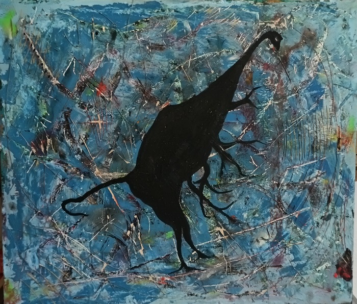 Στις πολυεπίπεδες και πολυχωρικές ζωγραφικές του παραστάσεις που απλώνονται επάνω σε ευρεθείσες ξύλινες επιφάνειες (π.χ. πεταμένες πόρτες σπιτιών), εξελίσσεται ο περιπατητικός ρεμβασμός του λυρισμού ενάντια στην αψυχία του κόσμου ως πράξη αντίστασης στη θετικιστική πτώση, ως επανασύνδεση με τον διαχρονικό Εαυτό, ως φούντωμα της ποιητικής υγείας μέσα στην περιρρέουσα ασθένεια του συναισθήματος. Εδώ, η ποίηση συναντά το πινέλο σε μια αστρική χωροθεσία, όπου τα απολεσθέντα γίνονται ευρεθέντα και η βαρύτητα μεταμορφώνεται τώρα σε πτήση. Ο Σαμσών Ρακάς προσκαλεί τους πλάνητες της ψυχής να βυθιστούν σε αυτή την εικαστική εκμυστήρευση.