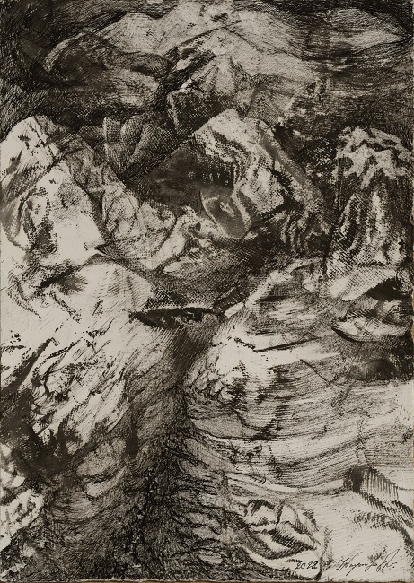 Το έργο του διακρίνεται για την ασπρόμαυρη κλίμακα. Λιτή μα συνάμα επιβλητική, γίνεται όχημα αποκαλύψεων. Άλλοτε ο έντονος διάλογος φωτός και σκιάς αιχμαλωτίζει το βλέμμα με δραματική οξύτητα, κι άλλοτε οι ανεπαίσθητες διαβαθμίσεις πλέκουν ένα γκρι ιστό από ενδιάμεσες υφές. Τα έργα του ξεδιπλώνονται μόνο σε όσους αφεθούν στη λεπτομέρεια της παρατήρησης και αποκαλύπτουν διαρκώς στοιχεία, για όσο τους αφιερώνεται κανείς. Η γραφή του συχνά θυμίζει υφαντό, μέσα από ξυσίματα, λεπταίσθητες χαράξεις, αλλεπάλληλα στρώματα μελανιού και χιαστές γραφές που θυμίζουν πλέξη, συνθέτει μια αίσθηση σχεδόν υφασμάτινη, όπου το ίχνος γίνεται ταυτόχρονα μνήμη και υλικό αποτύπωμα.