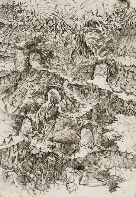 Η έμπνευσή του Ιορδάνη δεν υπακούει σε γραμμική λογική. Ωστόσο, αναδύεται από μνήμες προσωπικές, οικογενειακές αφηγήσεις, παιδικά θραύσματα εικόνων και συνυφαίνεται με μυθολογία και πολιτική, με βιώματα και συλλογικές αναφορές. Το αποτέλεσμα δεν είναι απλή αναπαράσταση, αλλά μια εκτενή παρατήρηση της πρώτης πράξης του έργου που μετατρέπεται σε έναν μεταιχμιακό τόπο ανάμεσα στο πραγματικό και το φαντασιακό, στο παροδικό και το αιώνιο. Μια διαδικασία που παρόλο που για τον ίδιο, ξεκλειδώνει τις πύλες του ασυνειδήτου και μοιάζει με συνειρμική παραβολή, ταυτόχρονα δεν παύει να είναι και αυτοαναφορική της ζωγραφικής σπουδής, που αναζητά αυτήν ακριβώς την λεπτομέρεια της αναπαράστασης που αποκαλύπτεται και συλλαμβάνεται από τον εικαστικό κατά τη διάρκεια της εξάσκησης.